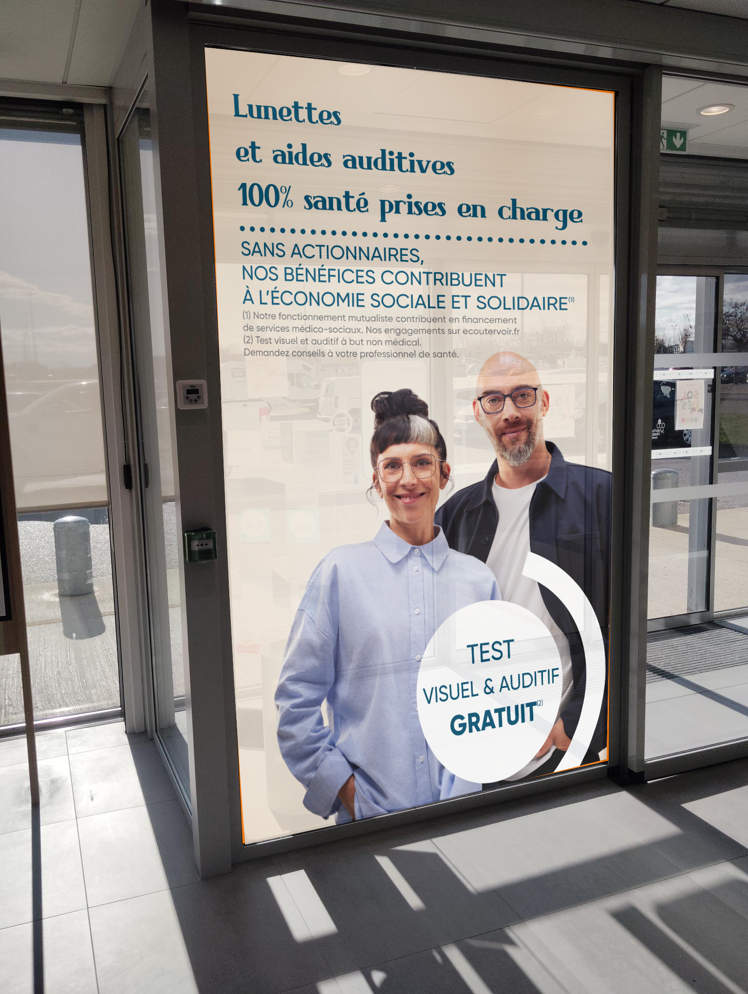 Dans le cadre de mon alternance, j’ai eu l’opportunité de concevoir et de piloter la réalisation de vitrophanies pour plusieurs magasins Écouter Voir, les crèches ainsi que pour les centres dentaires mutualistes de la Mutualité Française Grand Sud. Ce travail a impliqué la création des visuels (logos, horaires d’ouverture, éléments graphiques), tout en respectant les chartes graphiques des enseignes. J’ai également assuré la coordination avec les prestataires pour l’impression et la pose, garantissant ainsi une signalétique claire, professionnelle et harmonieuse avec l’identité de chaque lieu.